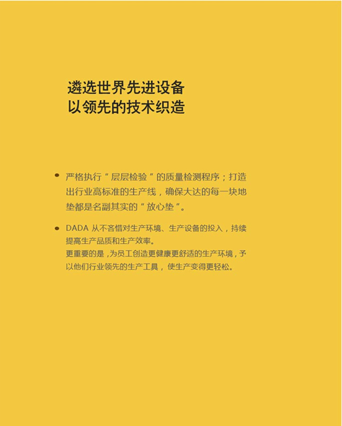 自品牌創(chuàng)立以來,憑借自身嚴(yán)謹(jǐn)?shù)墓に?、?yōu)良的品質(zhì),DADA大達(dá)擁有50多項(xiàng)國家專利技術(shù),革新近十項(xiàng)行業(yè)生產(chǎn)技術(shù),亦贏得了世界各國的認(rèn)可,先后獲得美國國際品質(zhì)認(rèn)證委員會(huì)頒發(fā)的“中國高品質(zhì)產(chǎn)品”、國際“信心紡織品”等榮譽(yù)稱號(hào)。
